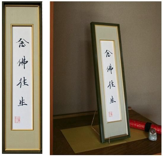 親鸞聖人ご真蹟 短冊「念仏往生」額入 オリーブグリーン