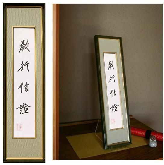 親鸞聖人ご真蹟 短冊「教行信證」額入 オリーブグリーン